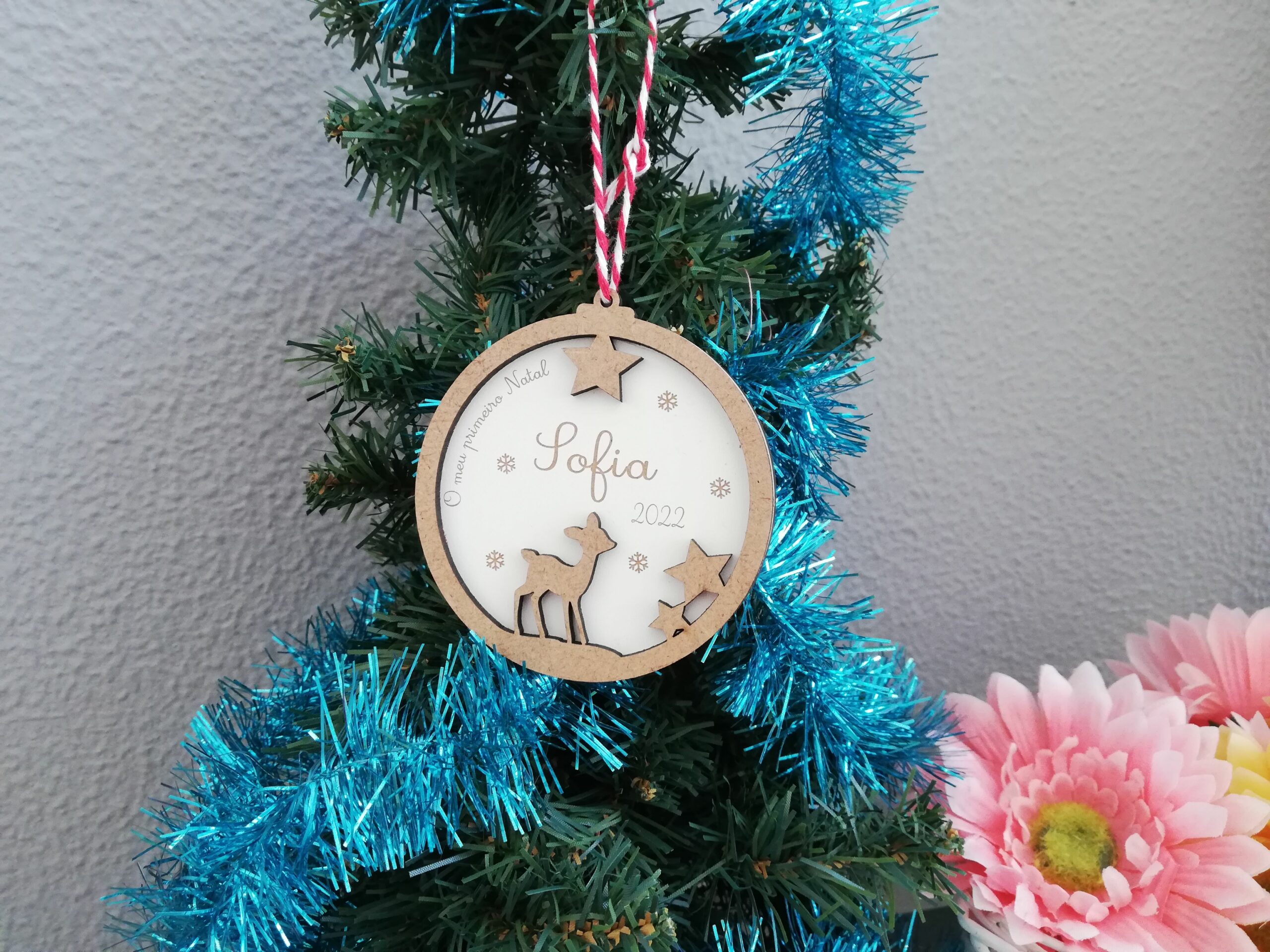Bola de Natal dupla com rena, primeiro natal