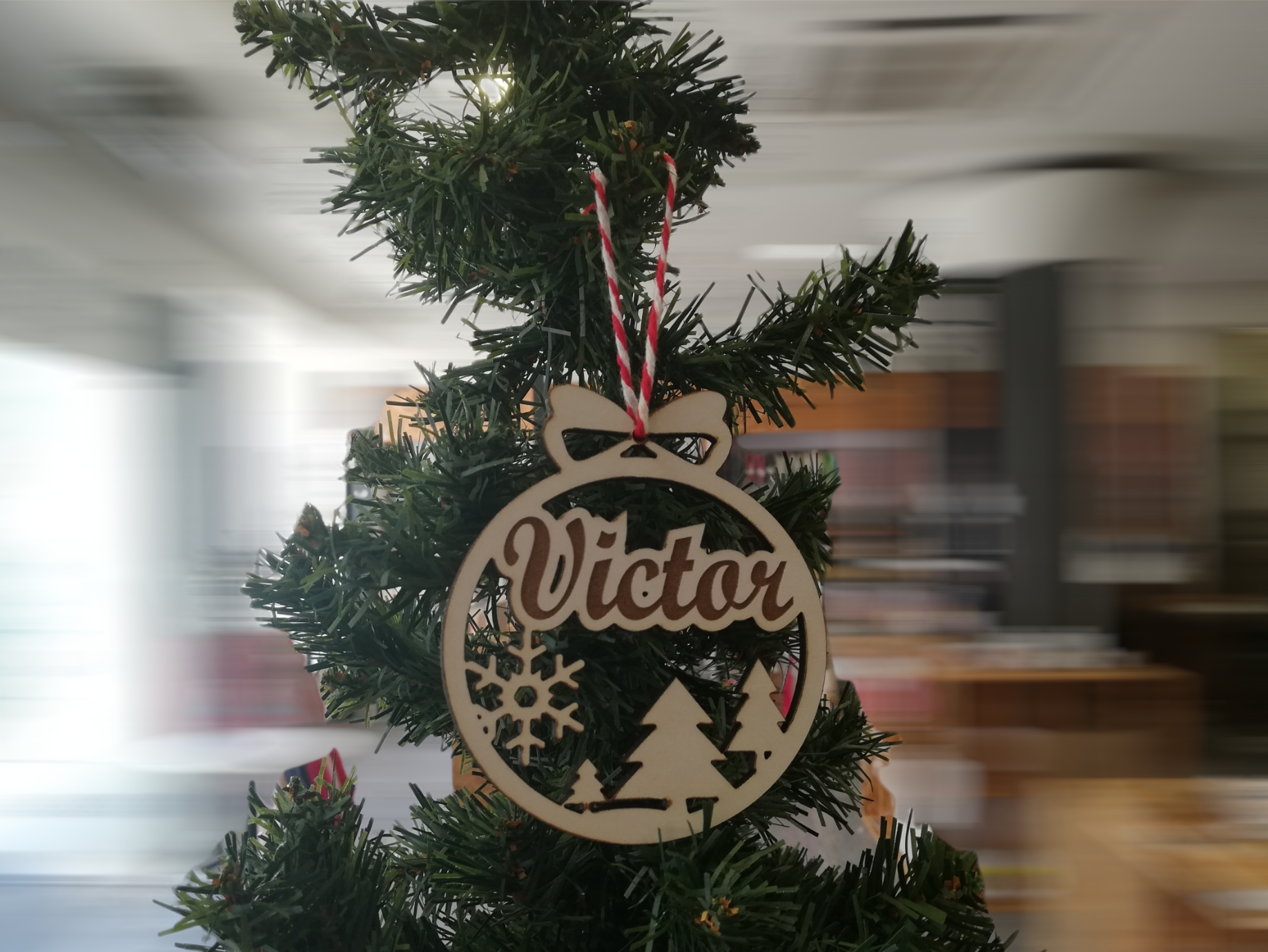 Bola de Natal – Floco e nome gravado e cortado