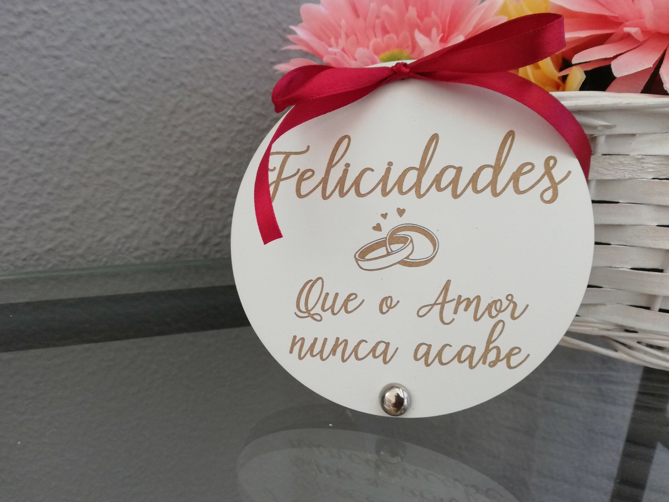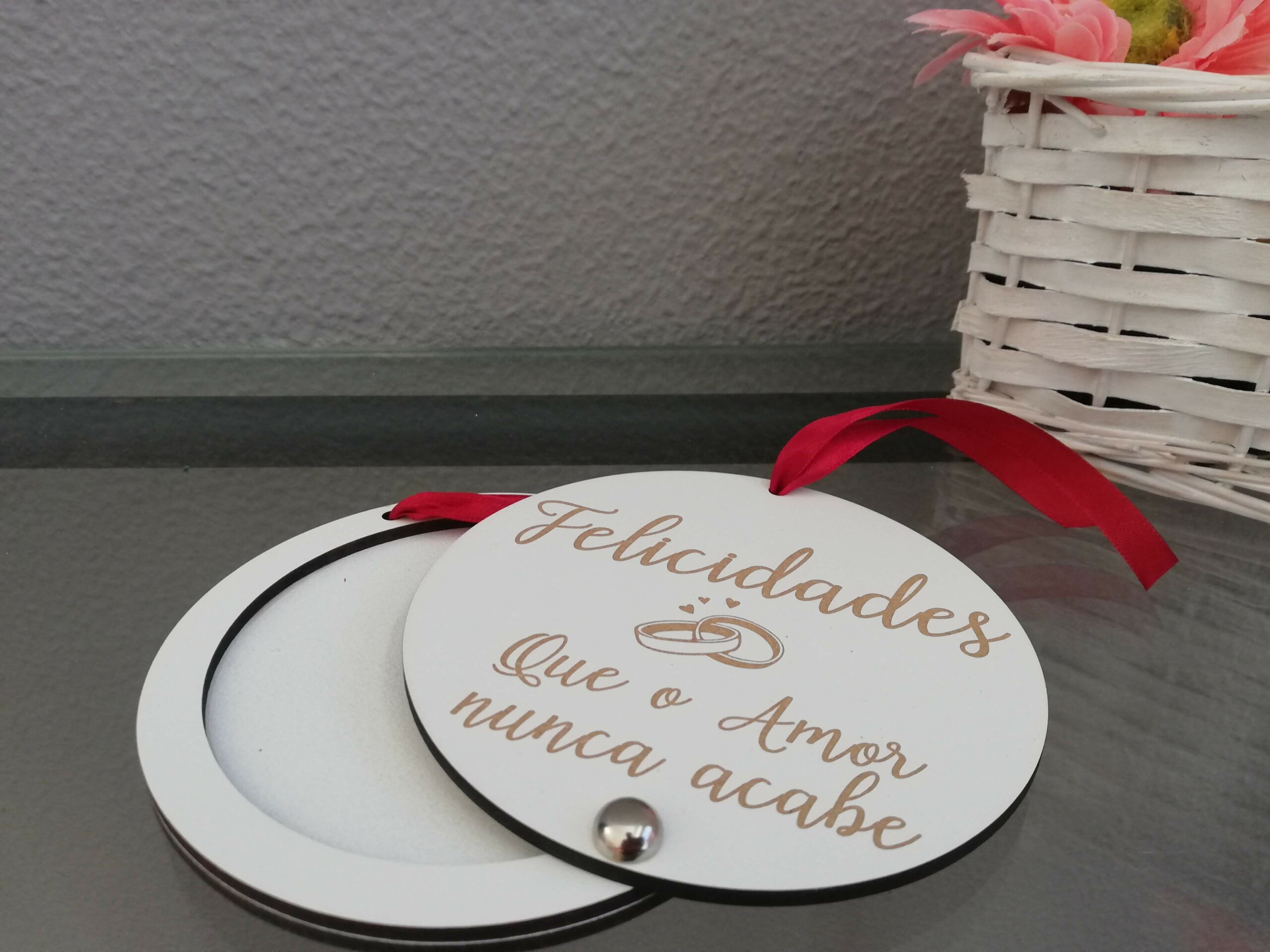 Disponível em branco ou tom de madeira, com gravação personalizada