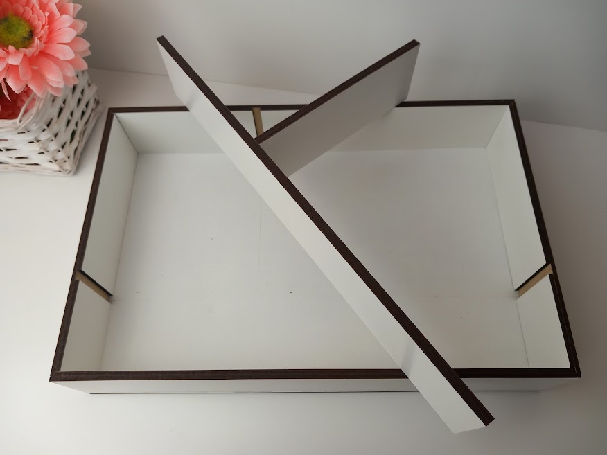 Caixa de Batismo em mdf branco, com divisão para vela, toalha e concha (Não inclui os acessórios).