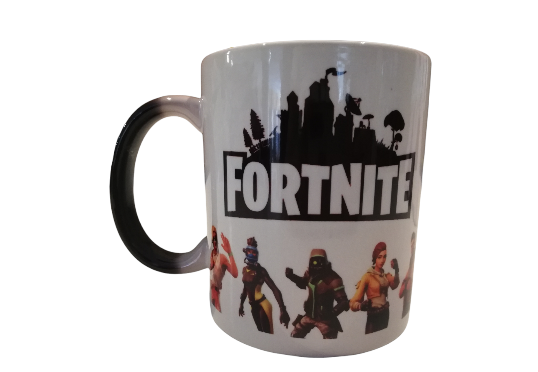 Caneca mágica, que incialmente é toda preta e vai mudando de cor, com a temperatura quente dos liquidos, deixando visualizar a personalização.