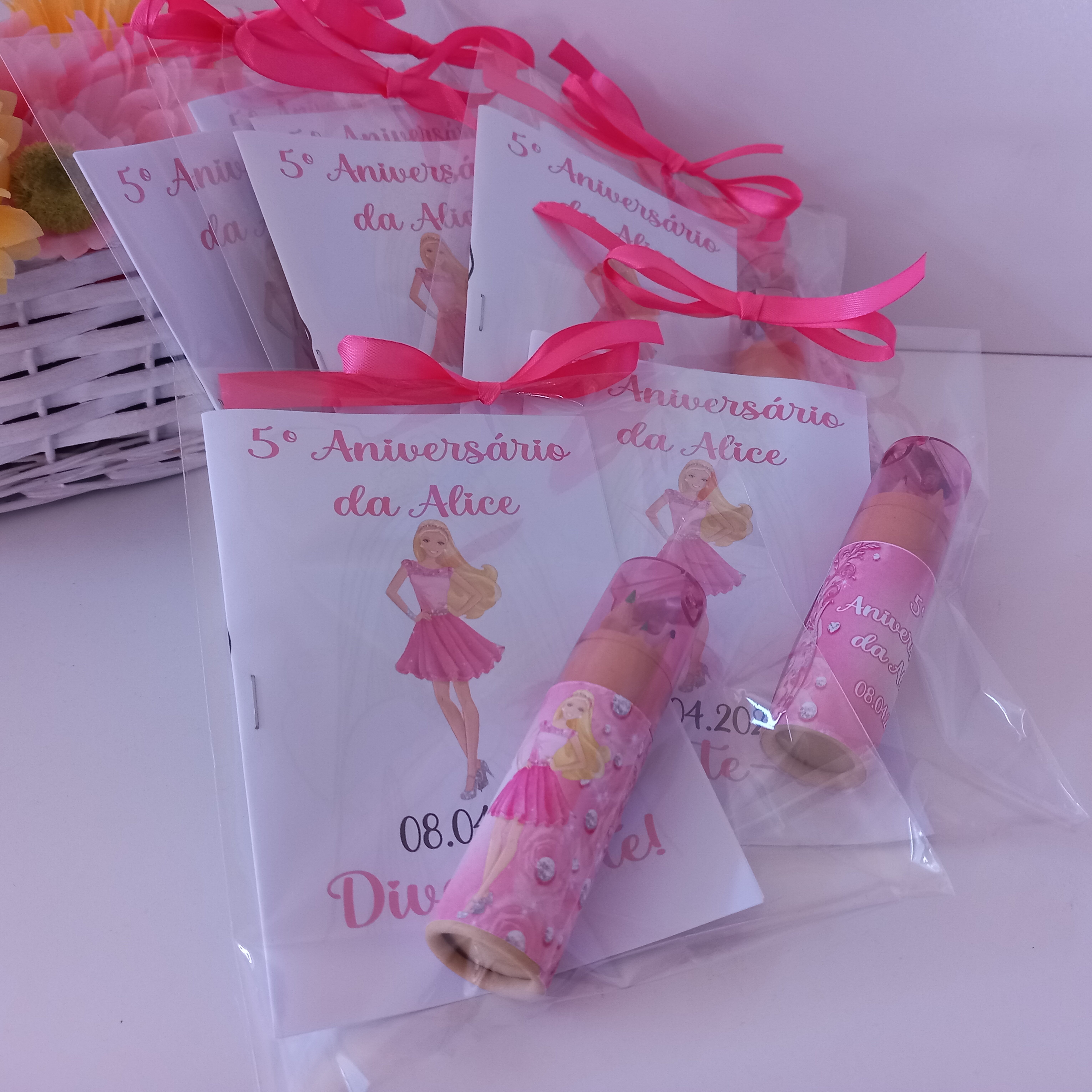 Conjunto de pintar, tema Barbie, composto por desenhos e tubo de 6 lápis de cor