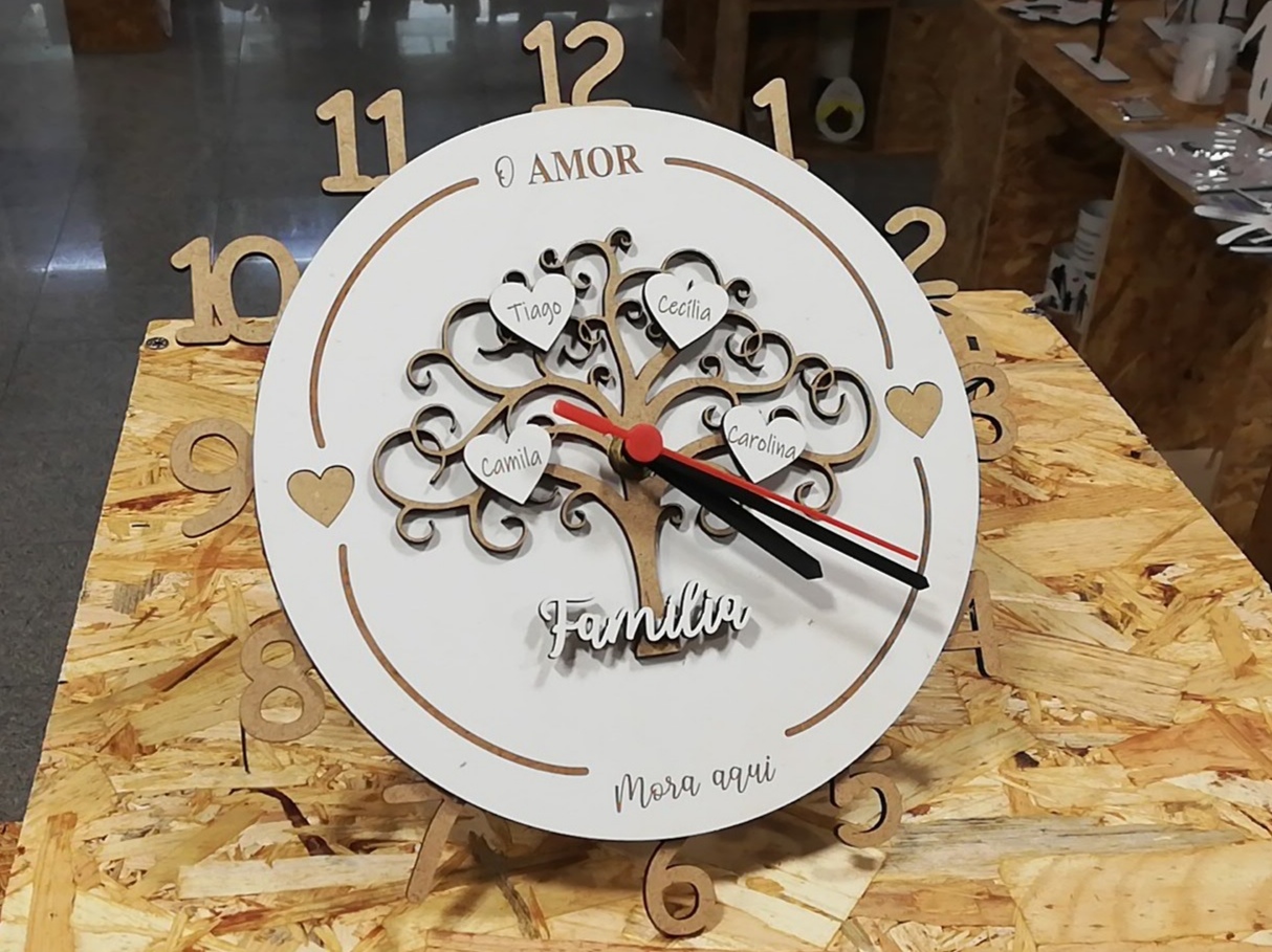 Relógio de parede, com cerca de 25 cm de diâmetro