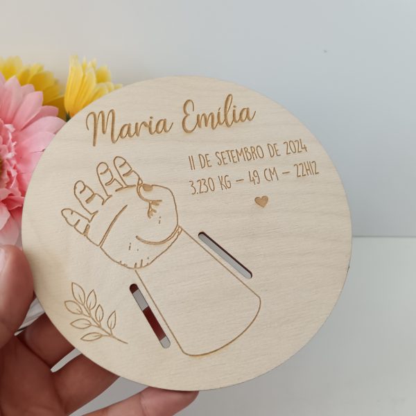 Saquinho Momentos felizes, personalizado com nome e rodela em mdf com 9,5cm de diâ, com nome da criança