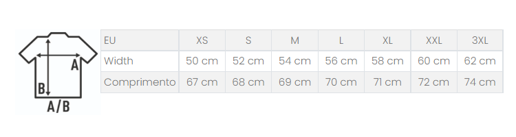 Verifique primeiro a nossa tabela de tamanhos para escolher o tamanho ideal.